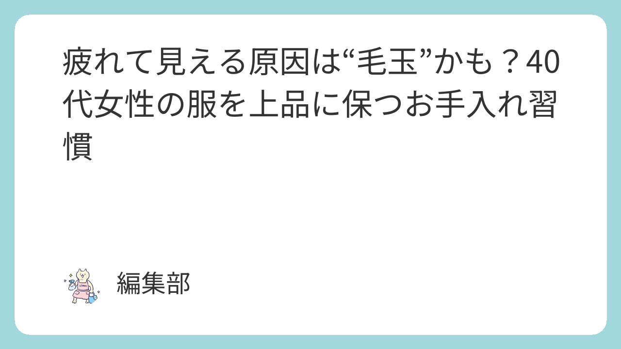 仕事・家事・育児に追われる40代の女性にとって、毎日の忙しさの中で自分の服にまで気を配るのは簡単ではありません。けれど、毛玉のある服を着ていると、どれほど素敵な人でも少し疲れた印象になってしまうことがあります。