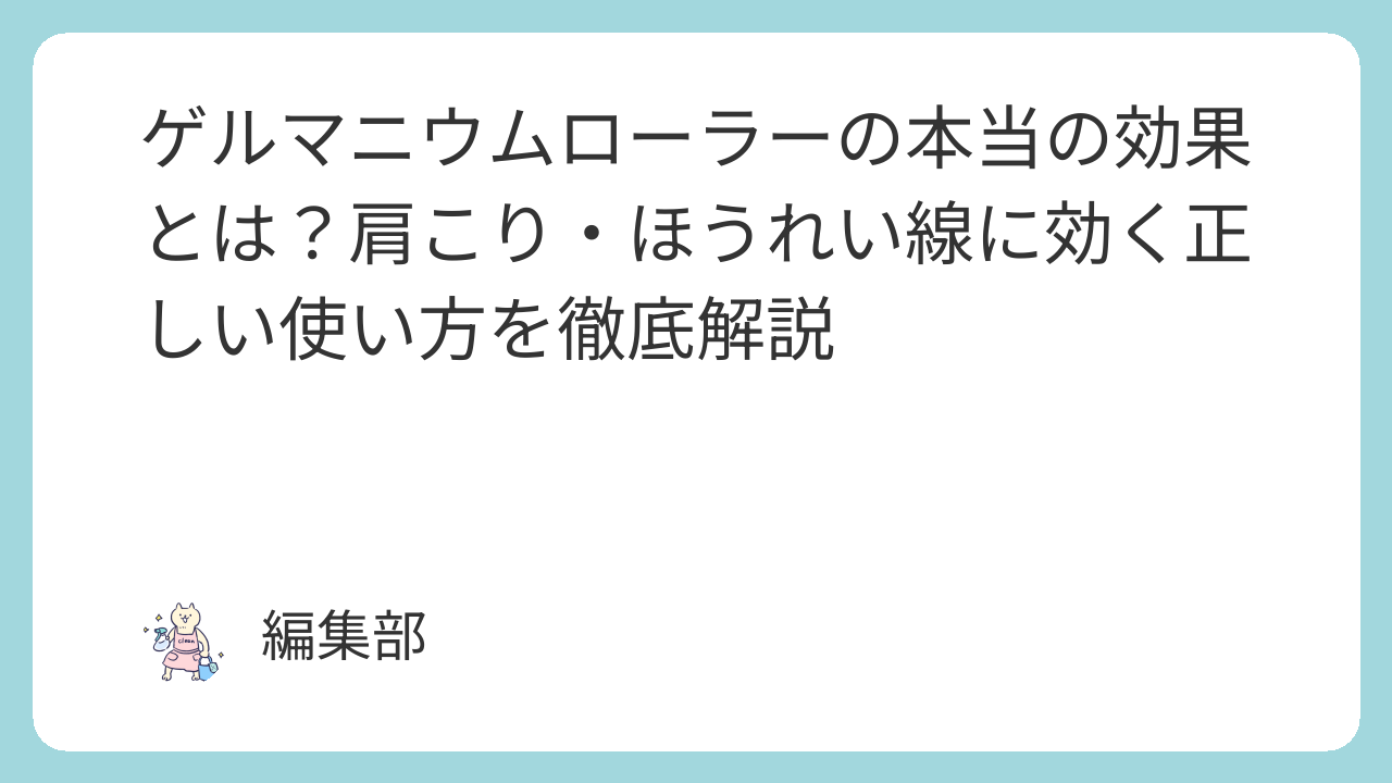 しかし、正しい使い方を知らずに使うと「効果がよくわからない…」と感じることも。本記事では、ゲルマニウムローラーの仕組みから、肩こりやほうれい線への具体的な使い方、さらには効果を最大化するコツまで徹底解説します。