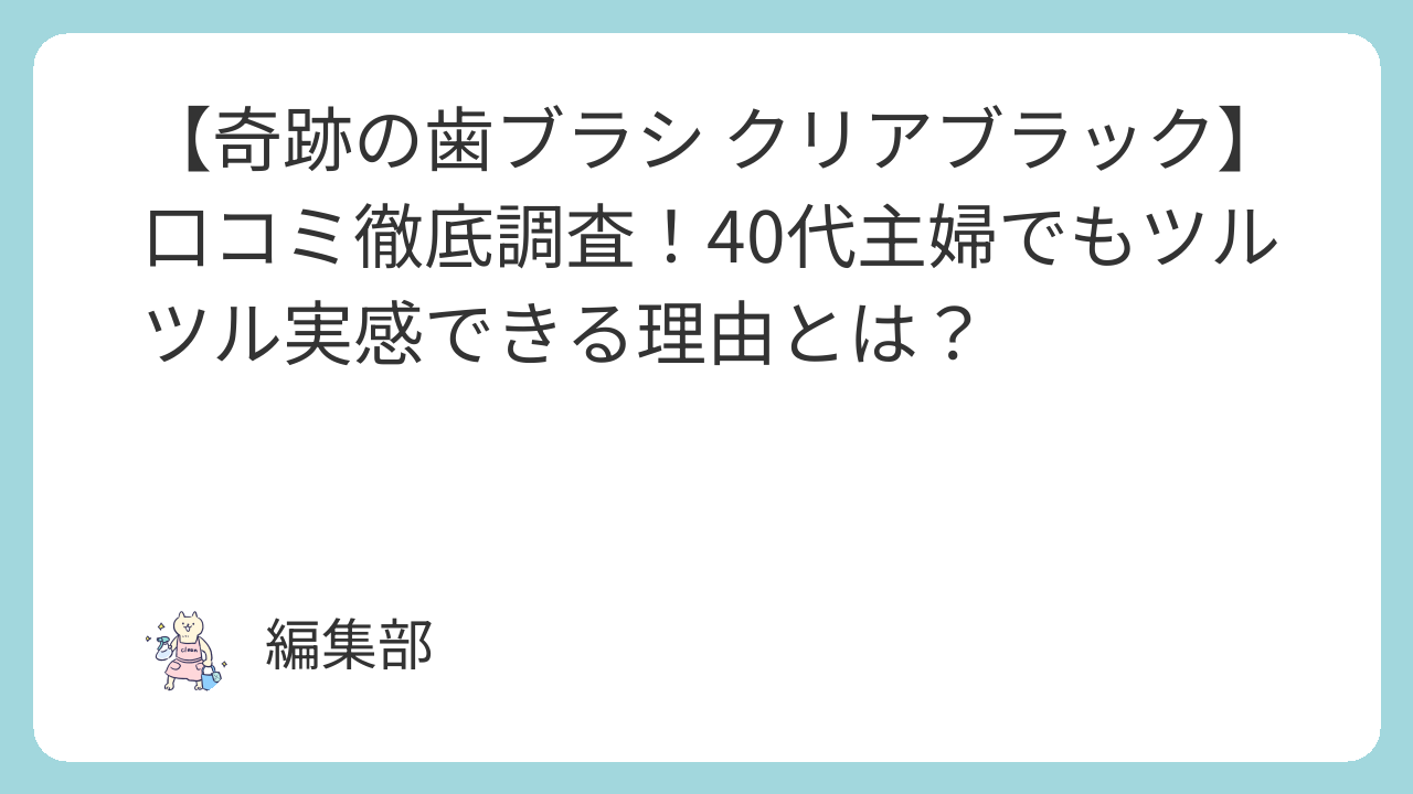 【奇跡の歯ブラシ クリアブラック】口コミ徹底調査!40代主婦でもツルツル実感できる理由とは?