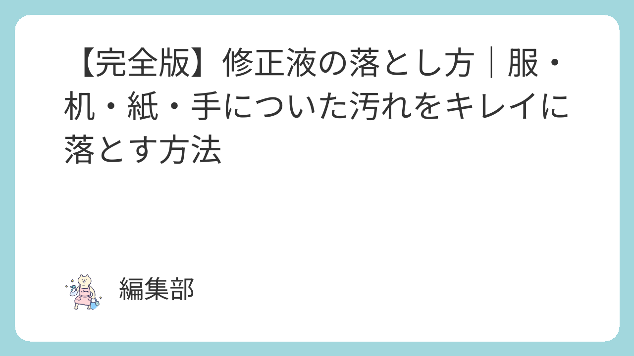 修正液の汚れは焦らずに、素材ごとに適した方法を選ぶことが大切です。アルコール・除光液・オイルを使えば、多くの汚れは自宅で落とせます。ただし、強い溶剤は素材を傷めることもあるため、テストを忘れずに行いましょう。