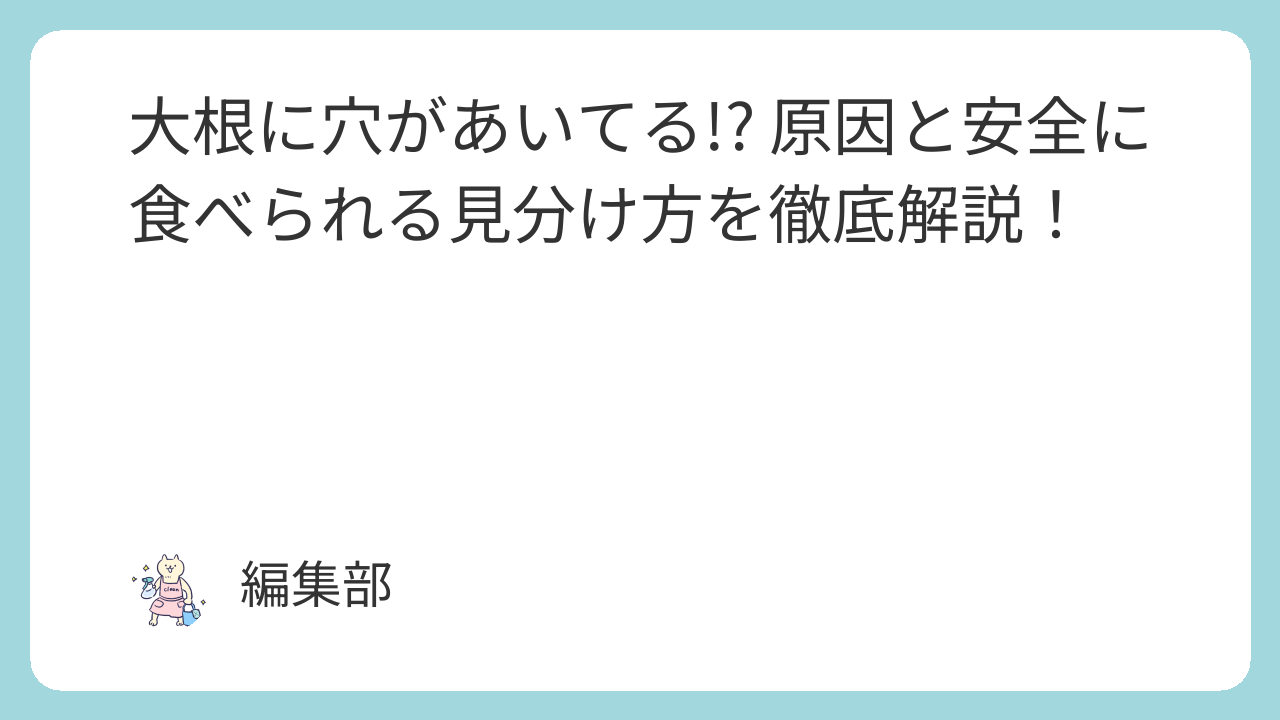 本記事では、検索者が最も知りたい**「安全に食べられる見分け方」**を中心に、穴ができる主な原因、台所でできるチェック手順、上手な活用法、さらに家庭菜園での予防策まで、順を追って解説します。この記事を読めば、次に大根を切ったときに慌てず、根拠を持って判断できるようになります。