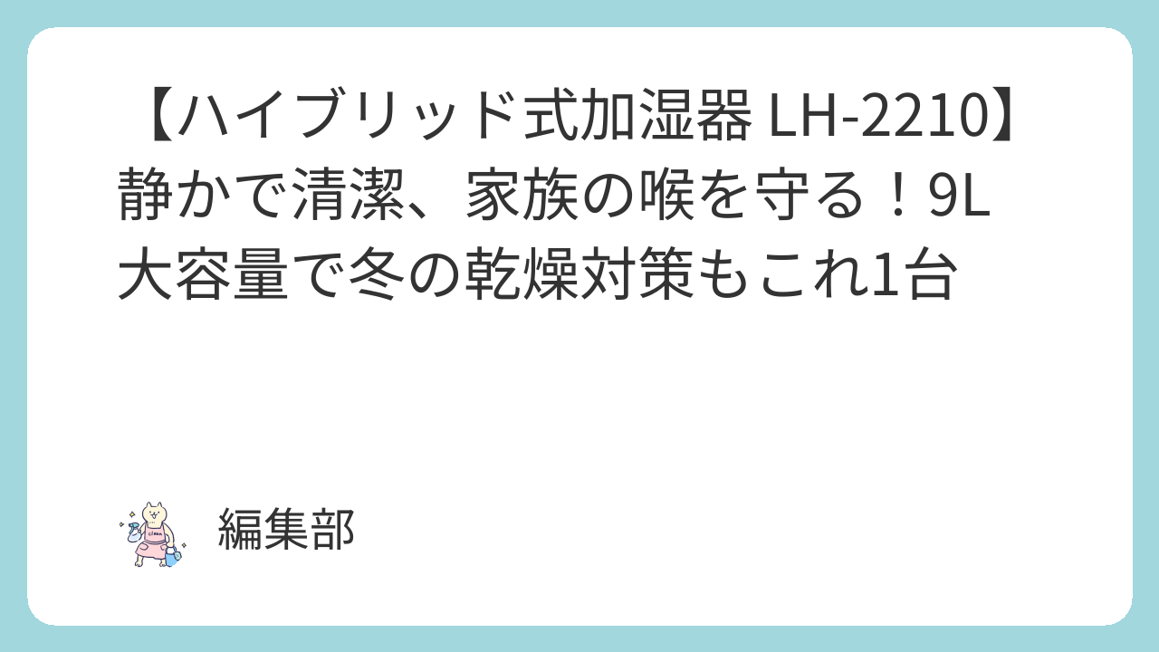 【ハイブリッド式加湿器 LH-2210】静かで清潔、家族の喉を守る!9L大容量で冬の乾燥対策もこれ1台