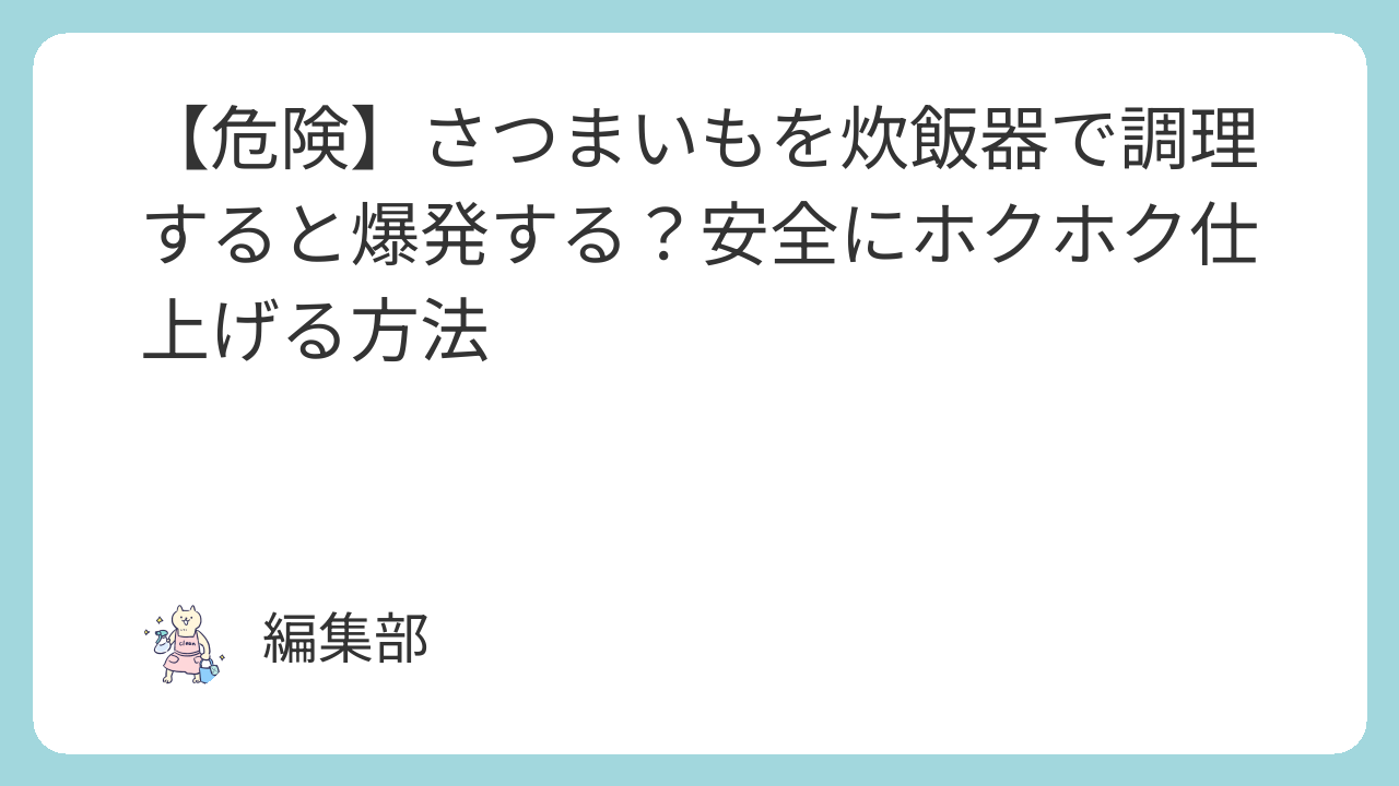 この3つのルールを守れば、ホクホクで甘いさつまいもを安全に楽しめます。記事を参考に、あなたも安心して「炊飯器焼き芋ライフ」を始めてみてください。