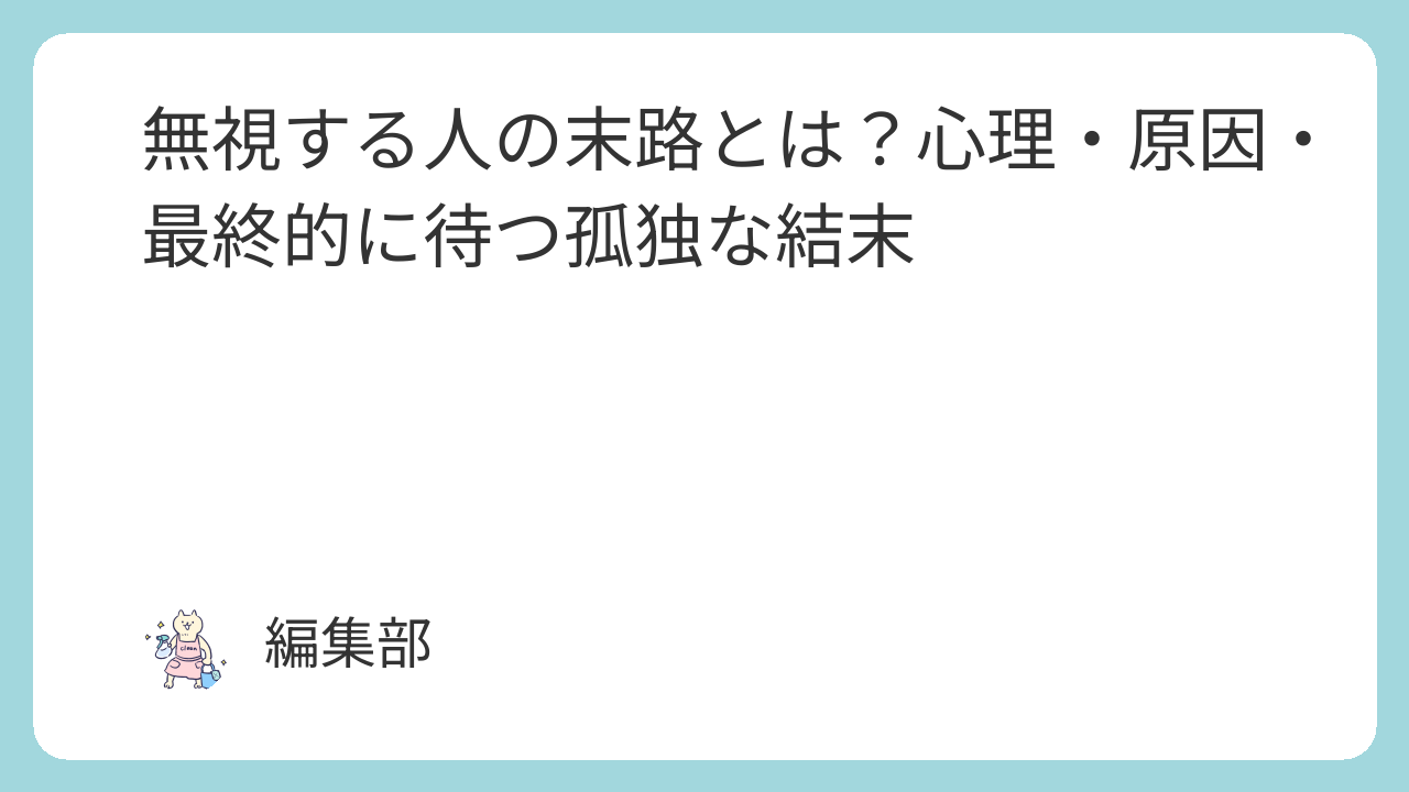 では、なぜ人は他人を無視してしまうのでしょうか?そして、無視する人にはどんな末路が待っているのでしょうか。この記事では、無視する人の心理や原因を掘り下げながら、最終的に彼らがどんな結末を迎えるのかを解説していきます。