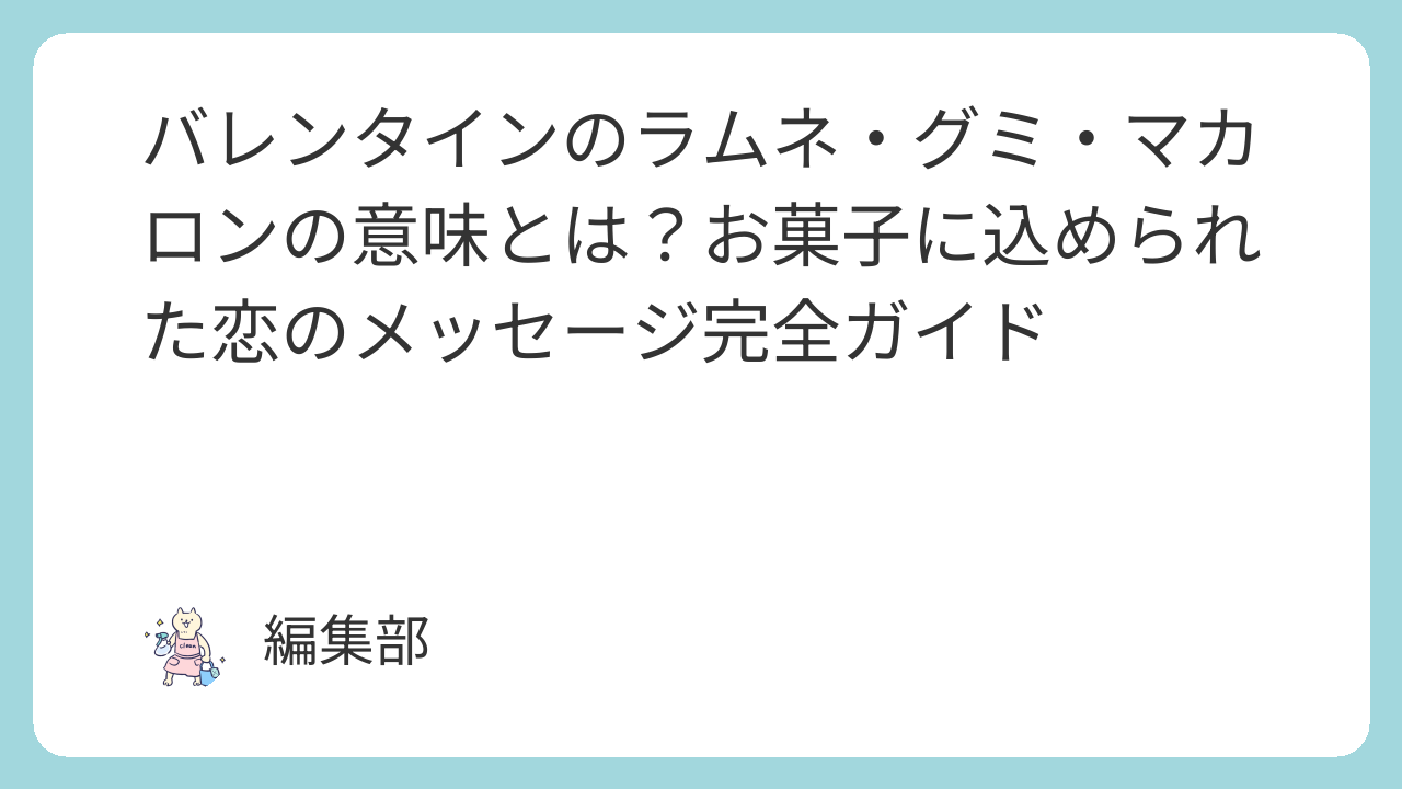 バレンタインといえばチョコレートを贈る日として知られていますが、近年ではラムネやグミ、マカロンなど“チョコ以外”のお菓子を贈る人が増えています。特に学生や友人同士の間では、かわいくてカラフルなお菓子が人気。しかし、実はそれぞれのお菓子には「恋愛にまつわる意味」があることをご存じでしょうか?