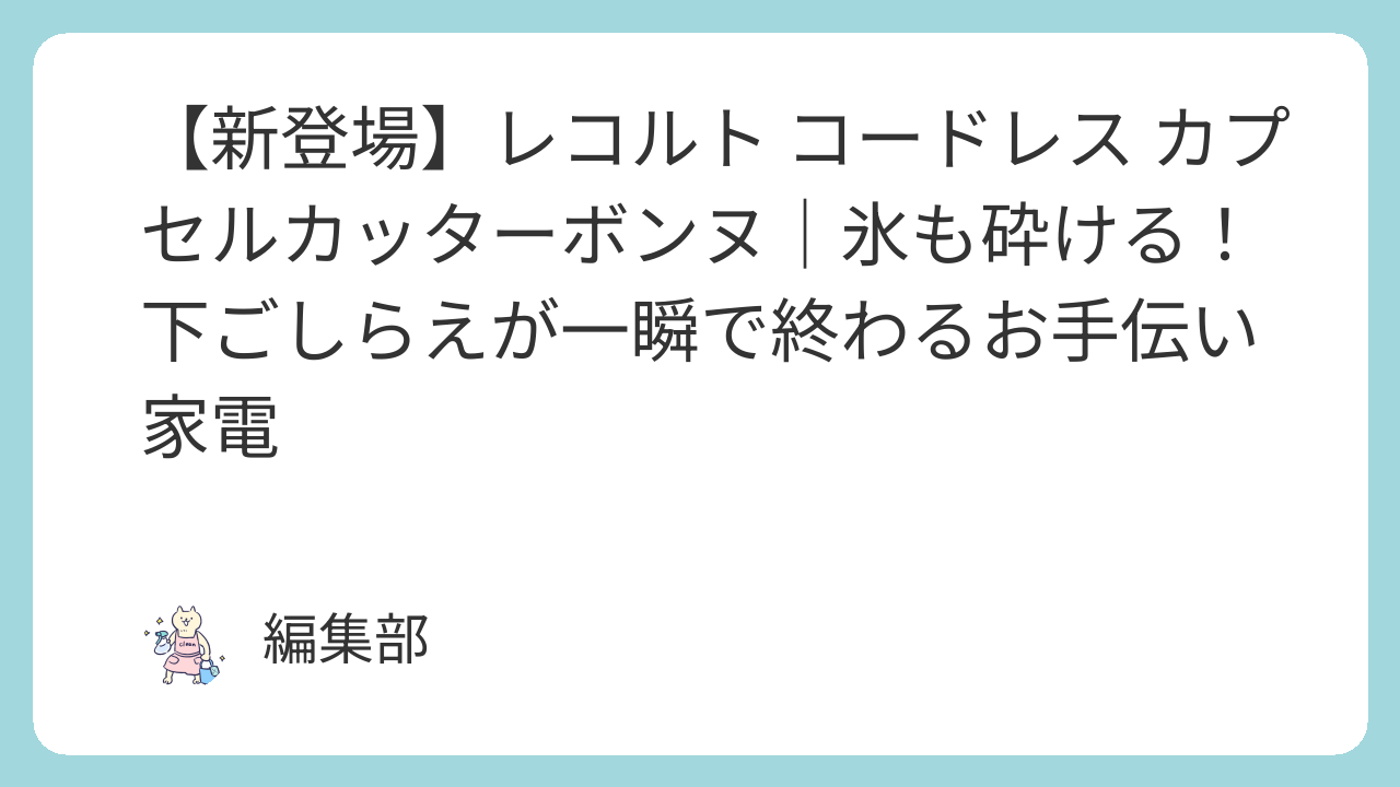 【新登場】レコルト コードレス カプセルカッターボンヌ|氷も砕ける!下ごしらえが一瞬で終わるお手伝い家電