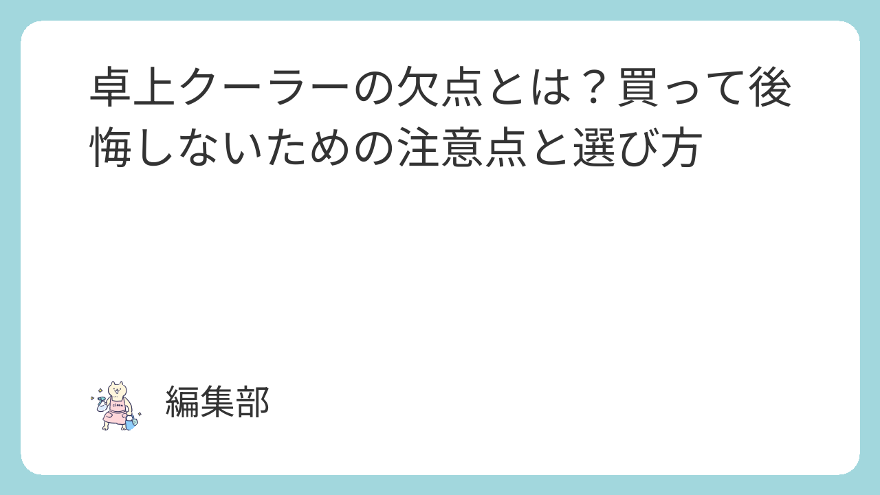 卓上クーラーは手軽でコンパクトな反面、冷却力には限界があります。補助的な冷却機器として活用し、湿度や距離などの条件を整えることで最大限の効果を発揮します。購入前に欠点を理解しておくことで、後悔せず賢く選べるでしょう。この記事が役に立ったと感じたら、ぜひ保存やシェアをして暑さ対策の参考にしてください。