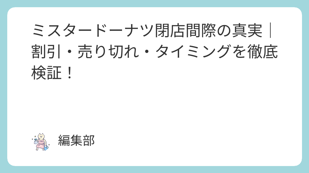 この記事では、ミスタードーナツ閉店間際の「割引」「売り切れ」「狙い目時間」を実体験や口コミをもとに徹底検証していきます。