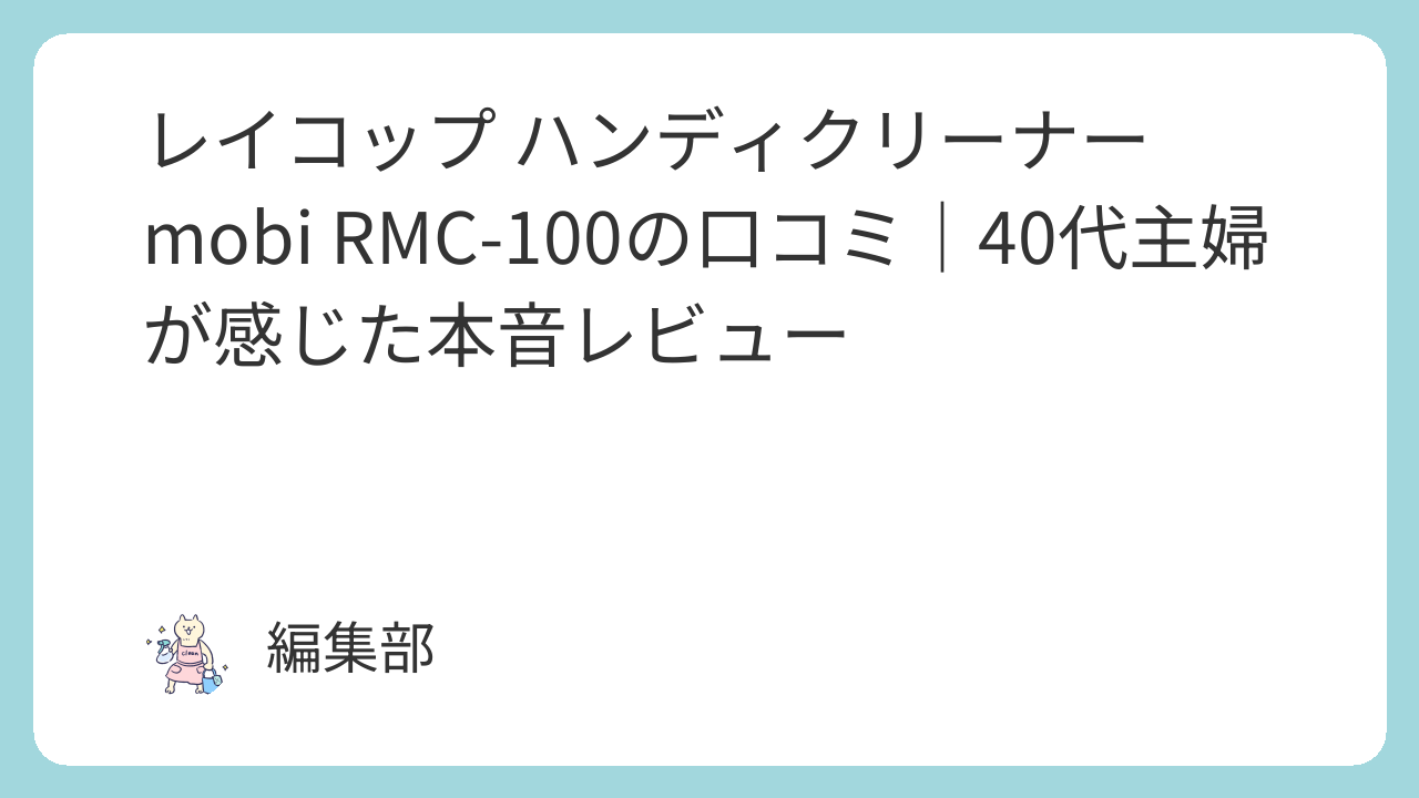 快適な毎日をサポートする“ちょい掃除家電”として、レイコップ Mobi RMC-100は主婦の強い味方。軽さと実用性で、使い続けたくなる一台です。
