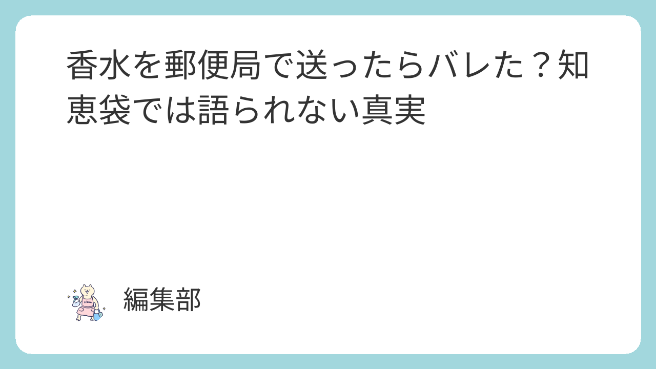 結論から言うと、郵便局で香水はバレる可能性があります。ただし、香水を送ったからといって必ずバレるわけではなく、実際の結果は梱包状態や発送方法、香水の量、さらには配送ルートなど複数の要因によって大きく左右されます。特に、箱や袋の外にまで香りが漏れている場合や、航空輸送が含まれる配送になるケースでは、仕分け作業中や窓口対応の段階で職員に気づかれる確率が高くなります。逆に言えば、匂い漏れを防ぎ、ルールに沿った形で適切に梱包されていれば、香水であることを指摘されることなく、そのまま問題なく相手に届くケースも決して珍しくありません。重要なのは、運に任せるのではなく、なぜ香水がバレるのかという仕組みや背景を理解したうえで、事前にできる対策をきちんと取ることです。