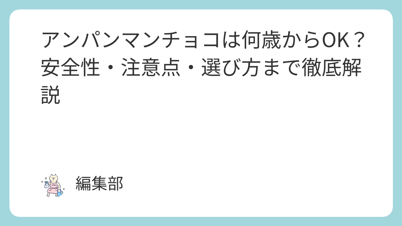 安全面と健康面を意識し、量と頻度を守れば、アンパンマンチョコは親子で楽しいおやつ時間を演出してくれる存在になります。特別なおやつとして上手に活用することで、我慢ばかりではなく、食の楽しさも伝えられるでしょう。この記事を保存して、迷ったときの判断材料として役立ててください。