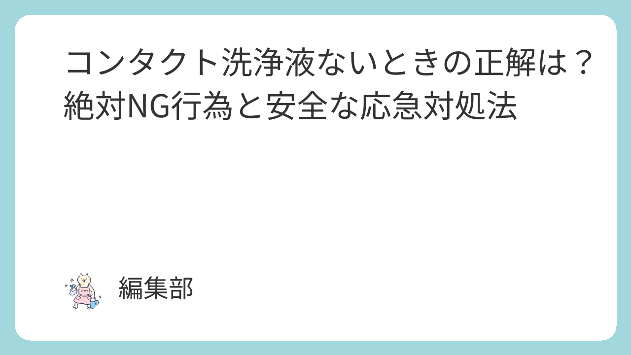 この記事をきっかけに、洗浄液のストック管理や外出用の備えを見直してみてください。事前の準備と正しい知識があれば、いざというときも冷静に判断できます。役立ったと感じたら保存やシェアをして、同じ悩みを持つ人の目を守る情報として活用してもらえれば幸いです。