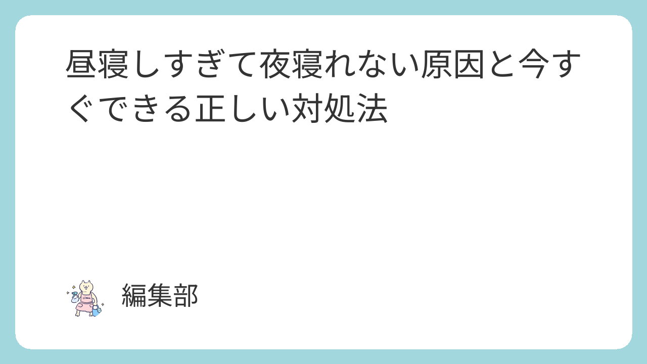 昼寝しすぎて夜寝れない原因は、体内時計と睡眠圧の乱れにあります。昼寝の時間帯を午後早めに設定し、長さを短くするだけでも、夜の睡眠は大きく改善する可能性があります。特に、毎日の生活リズムを一定に保つことは、昼寝と夜の睡眠のバランスを整えるうえで欠かせません。