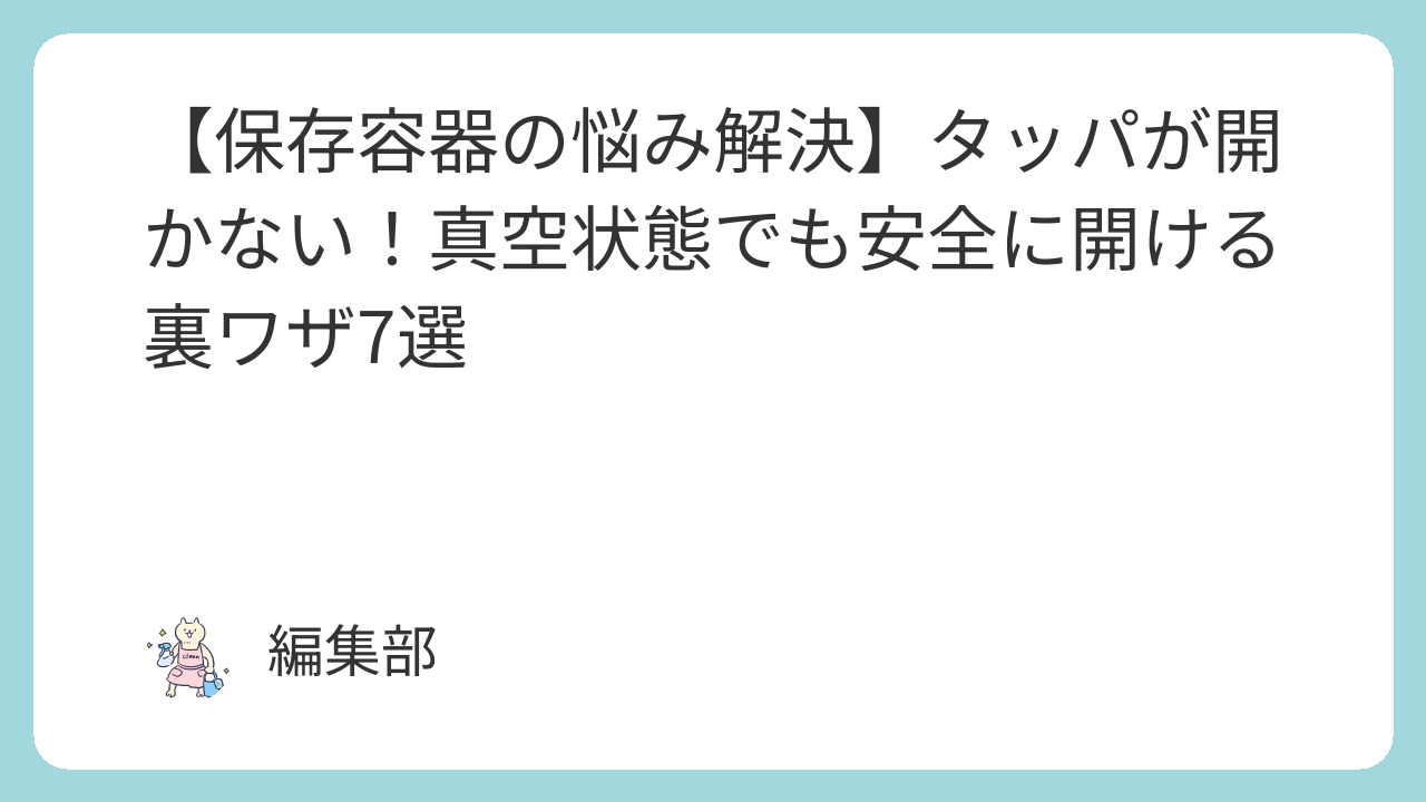 実は、タッパが開かない原因には真空状態・温度差・劣化といった物理的な理由があります。この記事では、その原因をわかりやすく解説しながら、安全に・簡単に開ける裏ワザ7選を紹介します。無理な力を使わず、誰でもできる方法ばかりです。