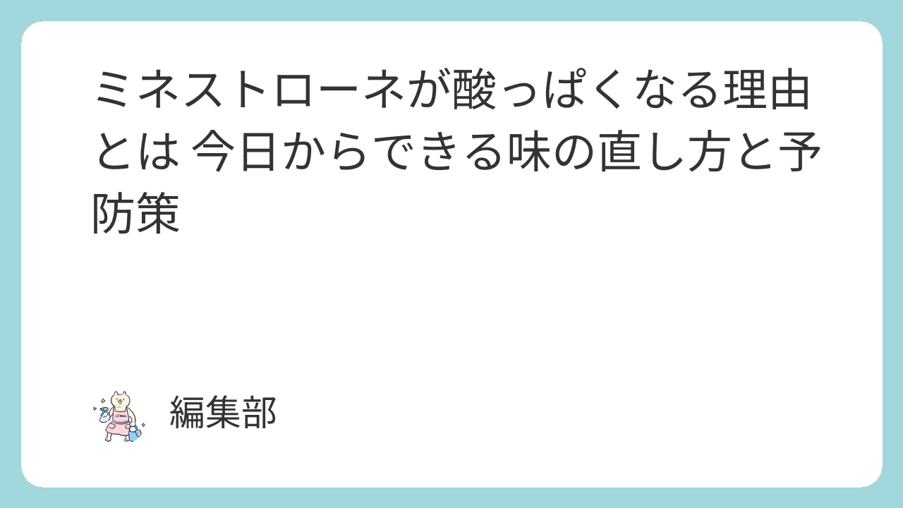 ミネストローネが酸っぱいと感じる原因は、トマトの性質と、コクや甘みが不足していることによるバランスの問題です。油脂や乳製品を上手に使えば、すでに作ったスープも十分に美味しく調整できます。
